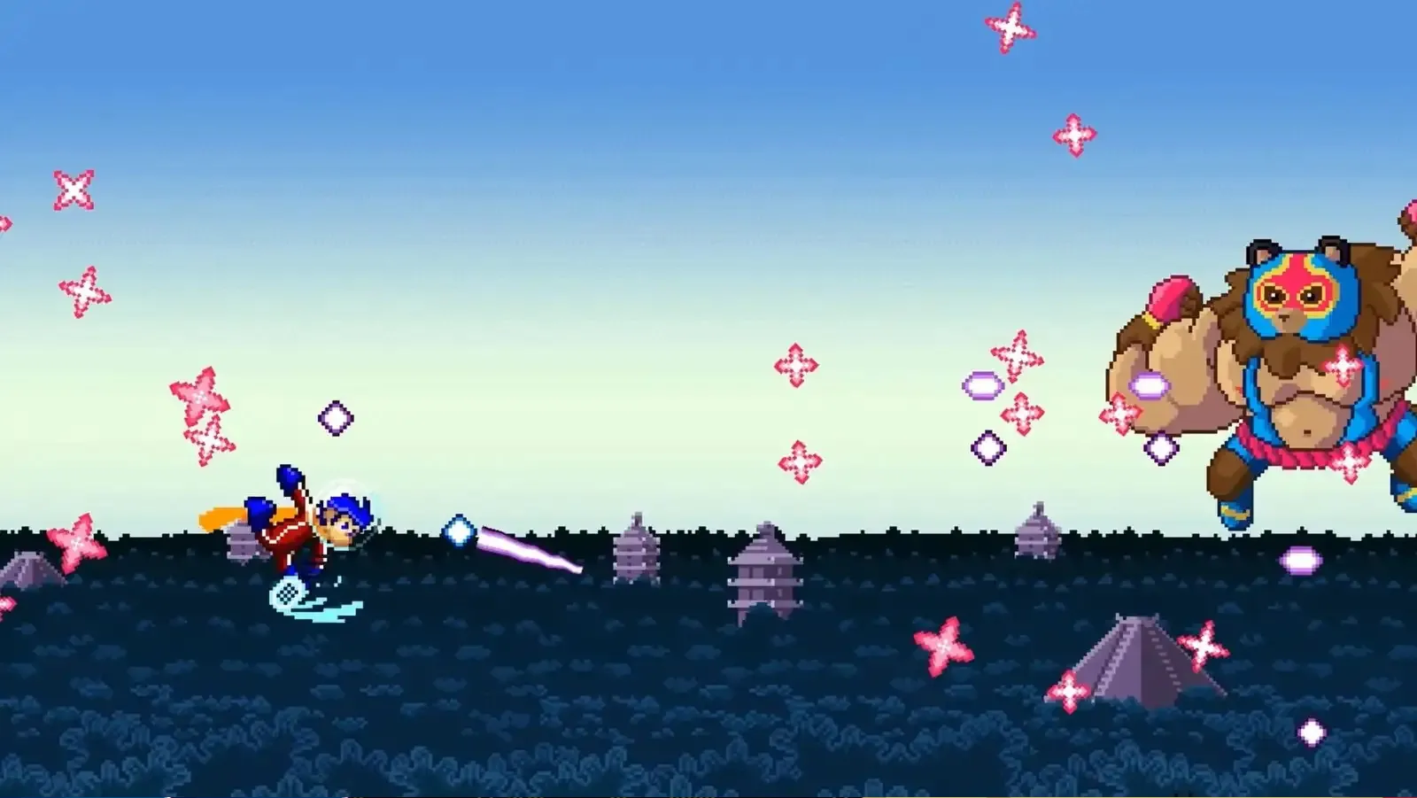 Погрузитесь в захватывающее приключение, где вы отбиваете вражеские выстрелы, путешествуя по ярким и красочным мирам! Возьмите свою лазерную ракетку, наденьте стильный шарф, соберите лучших друзей и отправляйтесь сражаться с армией милых, но опасных противников, стремящихся вас уничтожить. Выберите RacketBoy или RacketGirl — героев, избранных Богиней Капибарой для спасения галактики от зловещего гения-тирана Коррга! Не имея возможности атаковать напрямую, используйте вражеские выстрелы против них самих, превращая поле боя в динамичный космический теннис. Сразитесь с ордами уток, бутербродных котов, летающих зайцев, космических теннисистов-роботов и даже бананов в этом невероятном приключении по спасению галактики! Особенности игры: - Уклоняйтесь и отбивайте атаки врагов! - Наслаждайтесь забавным пиксель-артом. - Играйте в кооперативном многопользовательском режиме, чтобы разделить это безумное веселье с друзьями и удвоить удовольствие. - Оригинальная звуковая дорожка порадует поклонников 16-битной эры. - Испытайте себя в невероятных битвах с забавными и странными боссами! - Освойте искусство отражения атак и найдите креативные способы использовать оружие врагов против них самих!