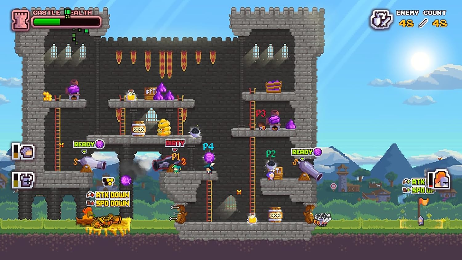 No Heroes Here - это суматошная кооперативная игра для одного-четырёх игроков. Координация и сотрудничество - вот ваше главное оружие для достижения успеха: каждый должен сыграть свою роль в предстоящих сражениях и работать вместе, как одна команда, чтобы защитить замки и королевство от неминуемой гибели.